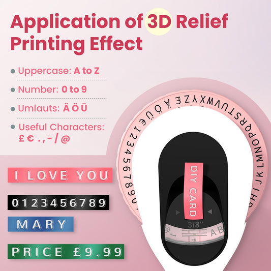 LabelCenter Etikettiergerät, 3D Prägegerät E975, Tragbarer Beschriftungsgerät, Etikettenprägegerät mit 6 Etikettenband,Etikettendrucker mit (£ € Ä Ö Ü), Einfach zu verwenden-für Haus, Büro (Pink)