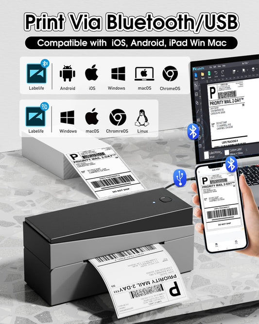 Shipping Label Printer,249BT Bluetooth Thermal Label Printer 4x6, Postage Label Printer, Label Printer Machine for Small Business, Compatible with Amazon, Ebay, Shopify,Royal Mail, DHL, FedEx